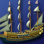 万历大福船礼品包:右击打开礼包,可获得万历大福船一艘。船只等级13、船体耐久度53450、船帆耐久度52730、水手总数460、横帆动力135、纵帆动力25、船转向度20、总火炮数106、船载重力3605。
