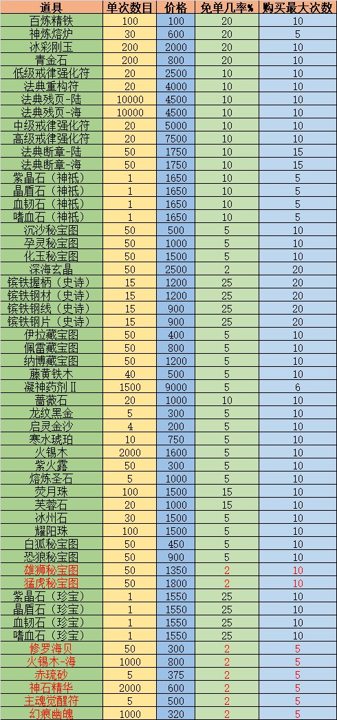 耀阳珠*50、火锡木-海*500、法典重构符*10 |