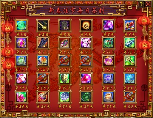 1. 玩家每天登陆游戏,通过点击活动按钮进入界面签到,即可获取对应奖励;